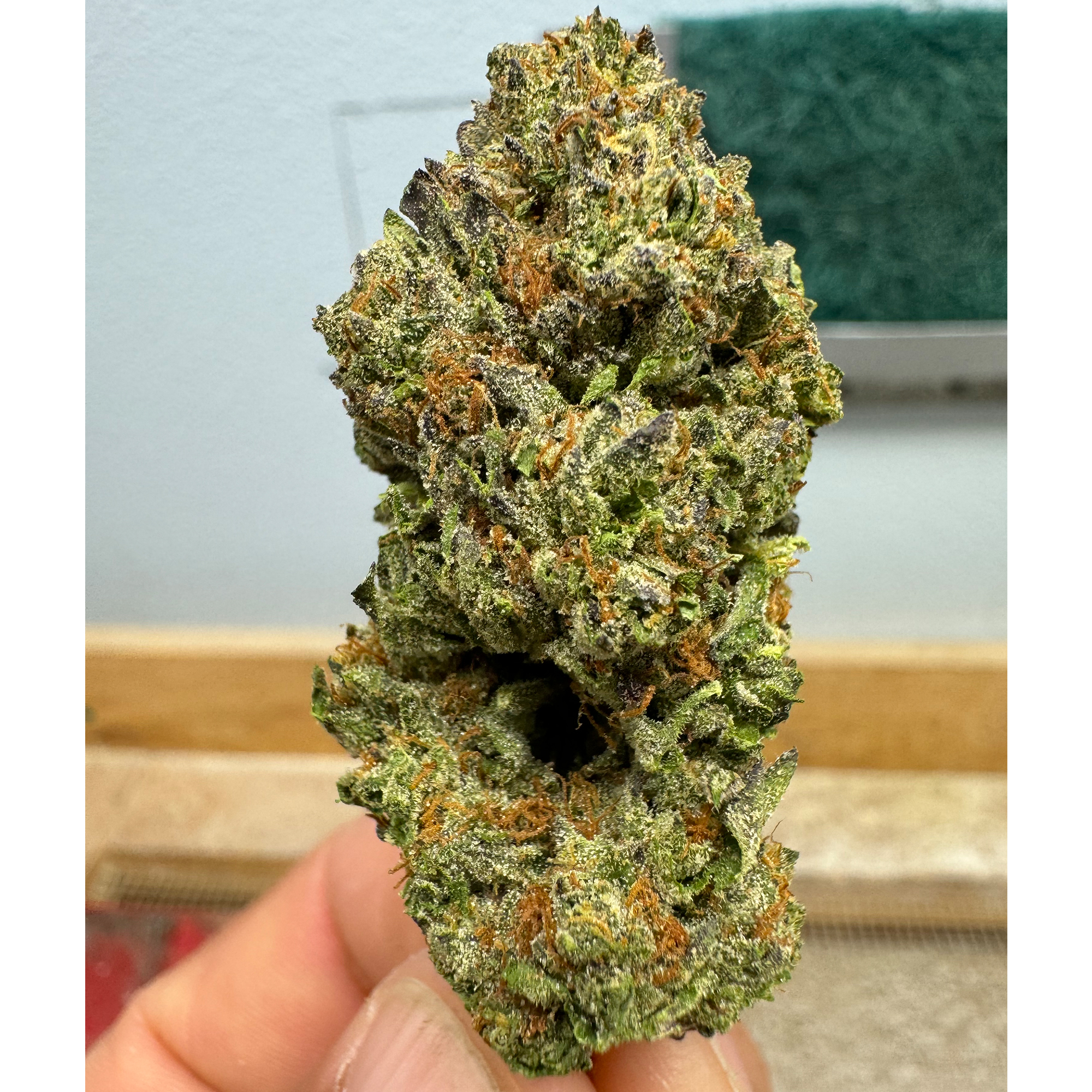 The buds, grown indoors to ensure top-tier quality, are dense and visually striking, featuring a mix of deep greens and purples. Bright orange pistils stand out against a frosty layer of trichomes, giving the buds a sparkling finish. Gushers is perfect for evening relaxation, providing a calming experience that eases stress without making you feel too heavy. Its blend of flavors and soothing effects makes it a standout choice for any cannabis connoisseur.